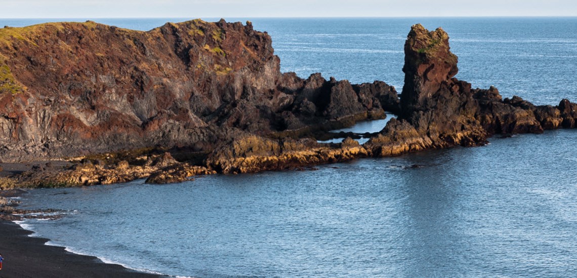 About 10 minute drive from Arnarstapi you will find the Lóndrangar basalt cliffs that strike out from the ocean. There are two rocks, one is about 75 meters high and the other one is about 61 meters. There is a rich birdlife around the cliffs, where you might find the puffin, fulmar, common murre and kittiwake. From Malarrif there is a relatively easy hike along the beach to Lóndrangar.