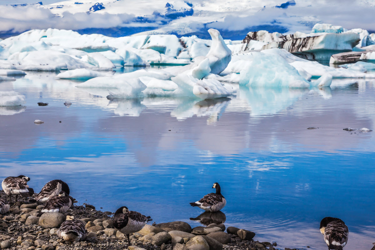 It is sometimes possible to seals swimming or relaxing on top of the icebergs at the Jokulsarlon Glacier Lagoon.