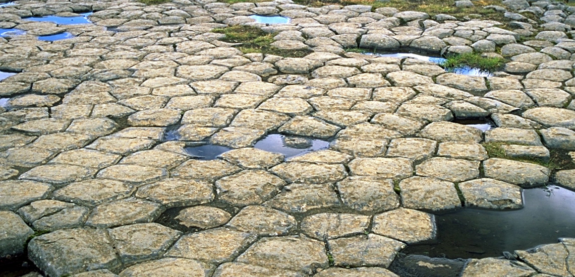 Kirkjugólfið (the church floor) is a basalt columns rock formation located in Kirkjubæjarklaustur town in South Iceland, on the left hand side on the way to Stjórnarfoss waterfall. It was believed to be an old church floor but after investigation they found out there had never been any building there. The formation of the rocks is quite amazing and they look like someone did put them there, like an work of art. The Church floor is about 80 m2 in size.