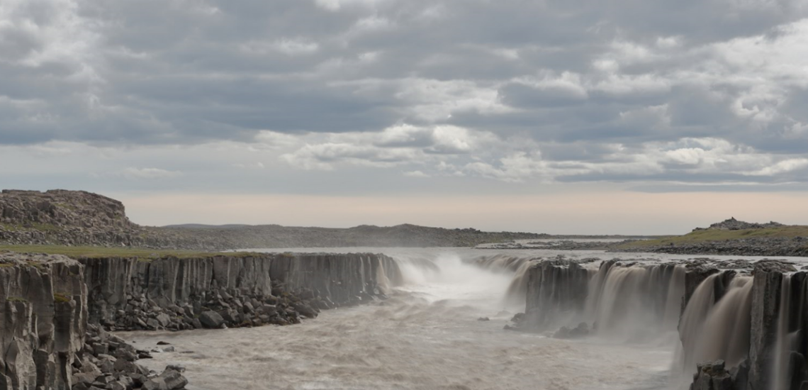Selfoss is a beautiful waterfall in the glacier river Jökulsá á Fjöllum. The waterfall is about 10 meters high and very wide. The waterfall is about 1 kilometer south of Dettifoss waterfall, and there is a hiking trail from Dettifoss to Selfoss waterfall. The waterfall gets its name from the farm of Hólssel. An extremely picturesque waterfall in a magnificent surrounding.