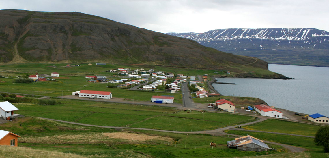 Grenivík is a small fishing village with about 300 inhabitants located in the north of Iceland, between Akureyri about 38 kilometer to the west and Húsavík about 93 km to the east. It is on the North part of Eyjafjörður fjord, surrounded by mountains to the north and the east, the best known is the mountain Kaldbakur 1173 metres high.